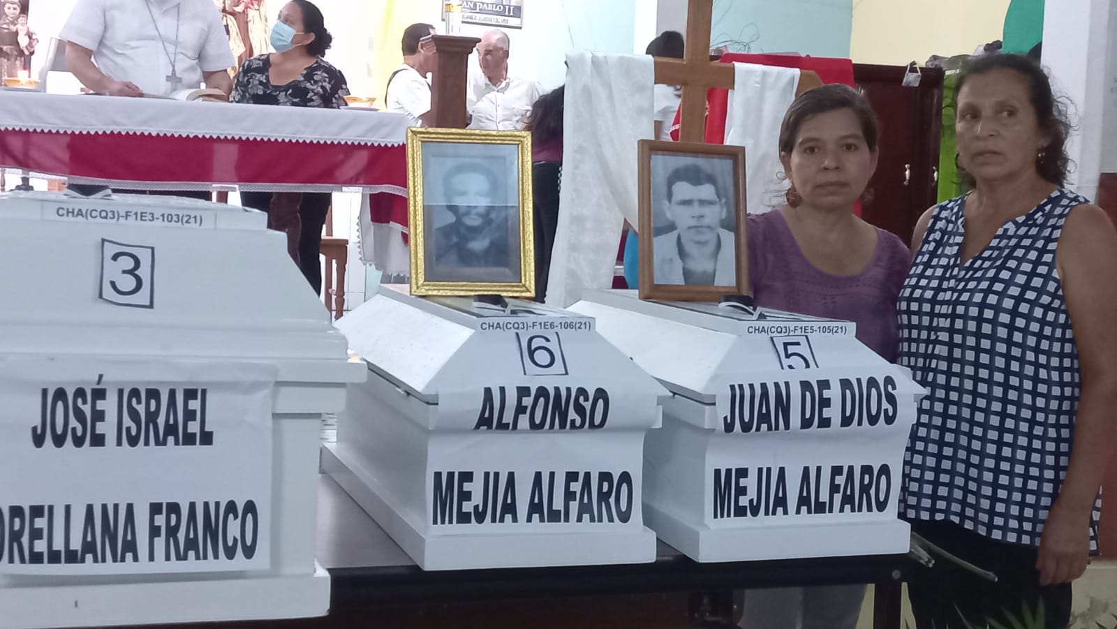 Casi 42 años más tarde, el día 29 de abril de 2022 a las 6:00 de la tarde vuelve a llover en caserío El Jícaro, del Cantón Las Minas. La noche empieza a caer y, con el tañer de campanas, niños, mujeres y hombres de la comunidad se acercan a la Iglesia. Unas pequeñas cajas de madera pintadas de blanco son colocadas sobre una mesa en el centro del templo. Hoy, los restos de Juan de Dios, su hermano Alfonso y los otros 4 asesinados el 13 de mayo de 1980, son restituidos a sus familiares, y la comunidad viene a acompañarlos en la misa de cuerpo presente y en la velación. Ellos son los primeros exhumados de las cerca de 600 víctimas de la masacre del río Sumpul. Monseñor Oswaldo Escobar, obispo de Chalatenango, celebra la misa e insiste en que, si bien la recuperación de los restos de estas personas es un paso importante hacia la justicia y para que sus familias puedan cerrar el duelo tan postergado, no se debe olvidar a los otros cientos de hermanas y hermanos que fueron asesinados en ese operativo. Este acontecimiento debe animar a la exigencia por que se abran los archivos militares y que haya justicia en el país.