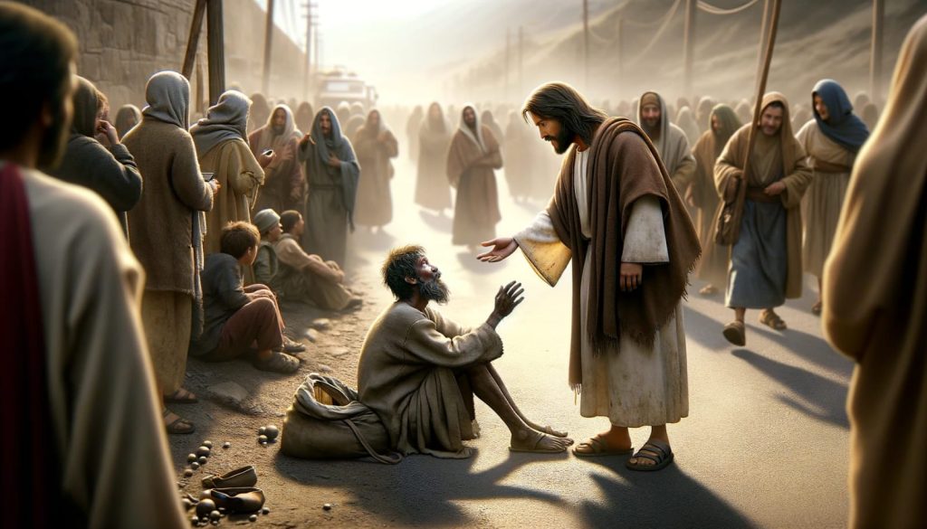 En primer lugar, conviene fijarse en la actitud de Bartimeo, el cual, en medio de su rutina diaria de pedir limosnas para sobrevivir, se da cuenta que su “Kairós” ha llegado: Jesús de Nazareth pasa junto a él. Y Bartimeo no desaprovecha la ocasión. Apenas escucha que es Jesús que va pasando junto él, comienza a gritar: “¡Jesús, hijo de David, ten compasión de mí!”. Este hombre que, según la opinión tradicional de su tiempo (cf. Jn 9), había nacido en pecado, es capaz de “ver”, a Jesús. Sin duda se trata de una fe todavía incipiente, pero sincera. Dicho sea de paso, este texto tiene un significado cristológico muy importante, puesto que si un ciego, un mendigo reconoce a Jesús como el hijo de David, significa que la gente humilde y marginada habían escuchado hablar de nuestro Señor. En efecto, si Bartimeo se dirige a Jesús como el hijo de David, significa que Jesús era visto ya en este momento como el Mesías, el descendiente de David prometido en 2 Sam 7. Se trata, sin duda, de una cristología implícita, pero fundamental en la tradición bíblica. Como sabemos, entre las distintas expectativas mesiánicas que existían en tiempos de Jesús, prevalecía la esperanza de la llegada de un Mesías descendiente de David, esperanza que se fundaba principalmente en la profecía de 2 Sam 7.